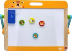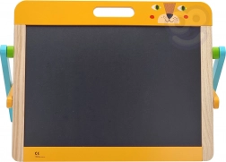 Dieses vielseitige Tooky Toy-Board besteht aus hochwertigem Holz und ist mit ungiftigen Farben versehen. Durch die einfache Tragbarkeit und die beiden Funktionen - Kreide- und Magnetseite - bietet es stundenlangen kreativen Spaß. Das Set enthält 6 Elemente einschließlich Radiergummi und 4 farbige Magnete.