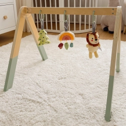 Das TOOKY TOY Baby-Gym ist so konzipiert, dass es die Sinne von Neugeborenen und Säuglingen behutsam fördert. Drei hängende Spielzeuge motivieren das Baby zum Greifen und Strecken und stärken so auf natürliche Weise Koordination und Geschicklichkeit. Sanfte Geräusche wie Rasseln, Knistern und Quietschen unterstützen Wahrnehmung und Konzentration.