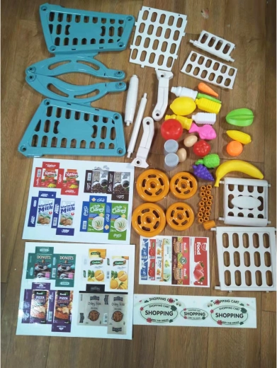 - Kinder-Einkaufswagen mit Lebensmittelset