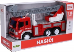 Dieses detailreiche Feuerwehrauto mit einer Länge von 28 cm bietet Kindern ein authentisches Action-Erlebnis. Dank des Schwungradantriebs fährt es leicht an, während die Licht- und Soundeffekte mit Tasten an der Kabine das kreative Spiel und die Fantasie fördern.