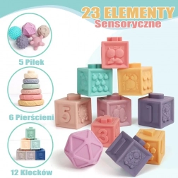 - 23 Teile für abwechslungsreiches sensorisches Spielen und Bauen