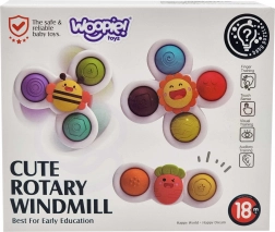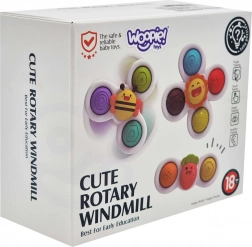 Das WOOPIE-Set enthält drei niedliche Spinner in Form von Sonne, Biene und Möhrchen. Dank robuster Lager drehen sich die Spielzeuge sanft und lange, während die farbigen Gummielemente Kinder zum Drücken und Entdecken verschiedener Texturen einladen. Mit den Saugnäpfen lassen sich die Spielzeuge leicht auf glatten Oberflächen befestigen – Fenster, Fliesen, Badewanne oder Tisch.