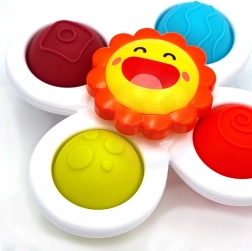 Die Spinner eignen sich sowohl für zu Hause als auch für unterwegs. Sie sind wasserfest und somit ideal auch als Badespielzeug. Beim Drehen, Drücken und Versetzen trainieren Kinder ihre Feinmotorik, Hand-Auge-Koordination und erhalten zugleich sensorische Entspannung.