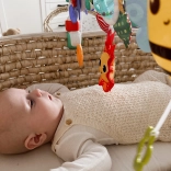 Dank seiner Elastizität lässt er sich leicht am Kinderwagen, Autositz oder Bettchen befestigen.