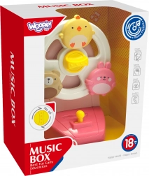 Küken, Häschen und Bärchen drehen sich nach dem Start und begleiten das Kind mit einer angenehmen Melodie der Spieluhr. Spielspaß, der Sehen und Hören stimuliert.