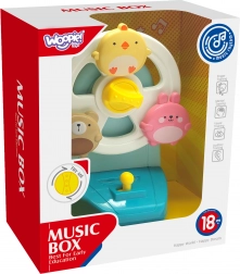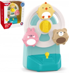 Entdecken Sie das interaktive Musik-Mobile mit Tierfiguren, das Kinder unterhält und vor dem Einschlafen beruhigt. Die farbenfrohen Figuren von Küken, Häschen und Bärchen drehen sich zur Melodie und fördern so auf natürliche Weise die Entwicklung von Sehen, Hören und der Auge–Hand-Koordination. Der stabile Saugnapf hält das Spielzeug sicher auf glatten Oberflächen – immer griffbereit und sicher.