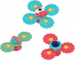 Das Set aus 3 drehenden Spinner-Spielzeugen der Marke Woopie ist ein interaktives und farbenfrohes Spielzeug für Ihr Kind. Jedes Spielzeug ist anders und hat 2, 3 oder 4 Arme. Sie lassen sich an glatten Oberflächen befestigen, was die Spielmöglichkeiten erweitert. Sichere Materialien ermöglichen, dass das Spielzeug auch als Beißring für das Kind dient. Dank verschiedener hervorstehender und vertiefter Elemente stimuliert es die Sinne und fördert die motorischen Fähigkeiten des Kindes.