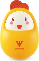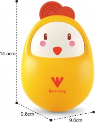 Die clevere Stehauf-Konstruktion sorgt nach jedem Anstupsen für ein gleichmäßiges Wippen – das Küken richtet sich stets wieder auf.