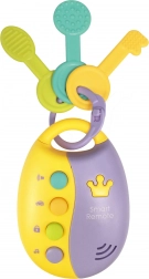 Die interaktiven Schlüssel der Marke Woopie sind ein multifunktionales und modernes Spielzeug, das jedes kleine Kind begeistern wird. Die vier farbigen Tasten aktivieren bei Druck verschiedene Sound- und Lichteffekte. Diese Effekte simulieren Geräusche wie das Öffnen und Schließen eines Autos, die Hupe, das Starten des Motors oder eine Türklingel und sorgen so für realistischen und fesselnden Spielspaß. Die unterschiedlichen Schlüsselformen können auch als Beißring dienen, der die Schmerzen beim Zahnen lindert und gleichzeitig die sensorische Entwicklung fördert. Zudem kann sich das Kind an 10 verschiedenen Liedern erfreuen, die seine rhythmischen und musikalischen Fähigkeiten unterstützen.