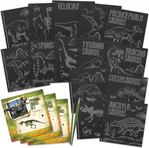 DinosArt Kratzkunst-Tagebuch ist die ideale Wahl für alle kreativen Geister. Entdecken und verzieren Sie vierzehn wunderschöne Zeichnungen während eines entspannenden und kreativen Prozesses.