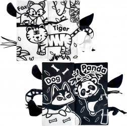 Schwarz-weiße Tiermotive sind ideal für Neugeborene und helfen, die Sehschärfe und Konzentration zu fördern.
