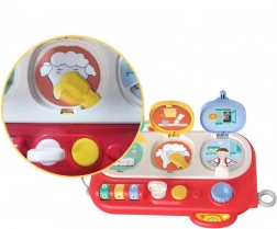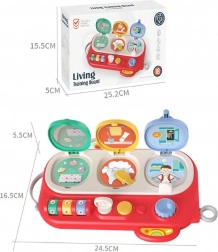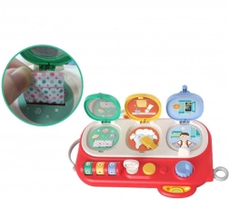 Dieses clevere Lernspielzeug hat drei Fenster, die sich jeweils auf unterschiedliche Weise öffnen – mit einer Kombination von Symbolen, einem Schlüssel oder einer Taste mit Drehregler. Im Inneren finden Kinder verschiedene Überraschungen: herausziehbare „Tücher“, ein Zahn-Motiv mit beweglicher Bürste sowie eine Figur mit drehbarer Auswahl an Kleidungsstücken. Jede Handlung hat ein klares Ergebnis, was das Verständnis von Ursache und Wirkung stärkt.