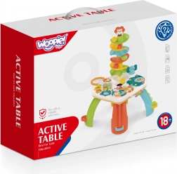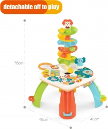 Der interaktive Tisch für Kinder kombiniert ein Lernpanel mit sensorischen Elementen und einer Ballrutsche. Das farbenfrohe und unterhaltsame Design spricht sowohl Jungen als auch Mädchen an. Der kindgerechte Tischdesign verbindet Spaß mit Lernen, was hilft, motorische und manuelle Fähigkeiten, Hören und Verständnis der Welt zu entwickeln. Es ist das ideale Spielzeug zur Förderung der Entwicklung Ihres Kindes.