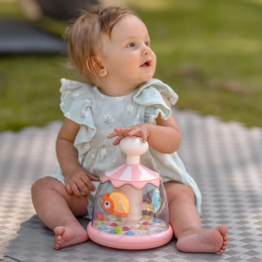Der fröhliche rosa drehende Kreisel mit Tieren der Marke WOOPIE begeistert Babys ab 6 Monaten. Beim Drücken der oberen Taste beginnen die Tierchen zu rotieren und die bunten Kugeln hüpfen wie auf einer kleinen Karussell-Attraktion. Das Spielzeug bietet visuelle und akustische Stimulation, fördert die Feinmotorik und die Hand-Auge-Koordination. Hergestellt aus sicheren und langlebigen Materialien für sorgenfreies Spielen jeden Tag.
