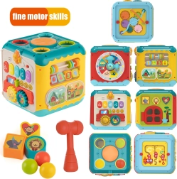 Jede Aktivität ist sorgfältig gestaltet, um verschiedene Fähigkeiten zu fördern, wie Hand-Auge-Koordination, Formen- und Farberkennung, Gehörentwicklung und kreativen Ausdruck. Dank seiner kompakten Abmessungen ist der Würfel leicht zu transportieren und bietet dennoch endlosen Spielspaß für kleine Entdecker, die spielerisch lernen möchten.