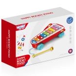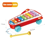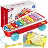 Das Xylophon funktioniert sowohl als Musikinstrument als auch als buntes Ziehspielzeug dank der stabilen Räder und des angebrachten Schlägels.