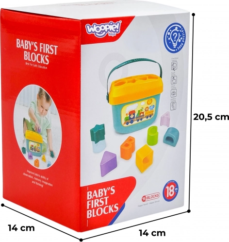 Der clevere WOOPIE-Sorter vereint Spiel und Lernen in einem. Die robuste Kunststoffbox mit Deckel und Aussparungen für Buchstaben, Zahlen und Formen lädt Kinder zum Zuordnen und Einwerfen der passenden Teile ein. Das Spiel fördert die Hand-Auge-Koordination, die Geduld und das räumliche Vorstellungsvermögen, während die bunten Elemente das Erlernen von Farben unterstützen.