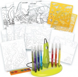 DinosArt Airbrush-Malset ist ideal für jeden kleinen Künstler, der Dinosaurier und kreative Unterhaltung liebt. Das Set enthält einen elektrischen Sprühstift, eine Ladestation mit USB-Kabel und eine Vielzahl von spezialisierten Markern und Aquarellfarben.