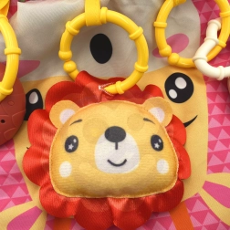 Rasseln, Beißring und weiche Hänge-Spielzeuge stimulieren Sehen und Hören und fördern die Feinmotorik. Sie können am Kinderwagen oder Autositz befestigt werden.