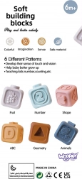 Die Würfel sind ideal als Beißring – sie lindern das Zahnfleisch und laden gleichzeitig zum Entdecken ein. Beim Zusammendrücken erzeugen sie einen Laut, der das Prinzip von Ursache und Wirkung vermittelt. Das Set ist geeignet für den Boden, das Kinderbett und die Badewanne. Kinder bauen Türme, sortieren nach Zahlen oder Reliefs und trainieren ihre Kreativität.