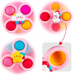 Mit diesem Set von drei Spinnern der Marke WOOPIE wird Ihr Kind begeistert sein. Im Set befinden sich Spinner in Form eines Einhorns, eines Sterns und einer Wolke. Die Spinner können auf verschiedenen Oberflächen wie Fenstern oder der Badewanne während des Badens angebracht werden, das Spielzeug ist wasserbeständig. Lager sorgen für langanhaltende Drehungen und abnehmbare Teile ermöglichen endlose Kreativität bei deren Kombination. Es hat Gummiteile mit unterschiedlichen Oberflächen, die die Sinnesentwicklung fördern und helfen, Stress abzubauen.