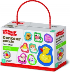 Unterhaltsame Konturpuzzles für die Kleinsten mit niedlichen Bauernhoftieren. Das Set enthält 8 einzelne Bilder mit je 2 Teilen – ideal für die ersten Puzzleversuche und zur Förderung der Feinmotorik. Einfache zweiteilige Puzzles, liebenswerte Bauernhoftiere und spielerisches Lernen begeistern jedes kleine Kind.