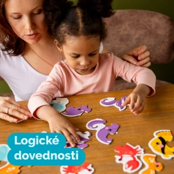 Entdecken Sie die Welt des Bauernhofs mit einfachen Konturpuzzles, die sich hervorragend für den ersten Kontakt mit Puzzles eignen. Jedes der 8 Bilder besteht aus 2 stabilen Teilen, die leicht ineinanderpassen. Kinder trainieren Feinmotorik, logisches Denken und das Erkennen von Tieren.