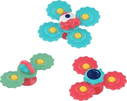 Das interaktive und farbenfrohe Set aus 3 drehenden Spinner-Spielzeugen der Marke WOOPIE ist ideal, um Ihr Kind zu beschäftigen. Jedes Spielzeug im Set ist anders und besitzt 2, 3 oder 4 Arme. Sie lassen sich leicht auf glatten Oberflächen befestigen und bieten so zusätzliche Spielmöglichkeiten.