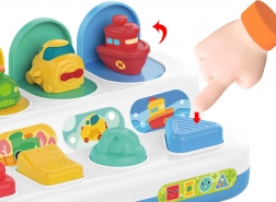 Dieses robuste und sorgfältig verarbeitete interaktive Spielzeug mit Pop‑up‑Mechanismus bietet Kindern ab 18 Monaten endlosen Spiel- und Lernspaß. Nach der Aktivierung über verschiedene Bedienelemente tauchen die bunten Fahrzeuge auf, was das Kind sofort belohnt und zum erneuten Ausprobieren anregt.