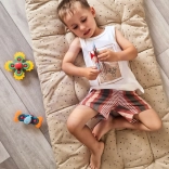 Das Set aus drei farbenfrohen WOOPIE-Spinnern ist das ideale Sinnes-Spielzeug für Kinder ab 18 Monaten. Dank der starken Saugnäpfe lassen sie sich mühelos auf glatten Oberflächen – Glas, Badewanne oder Tisch – anbringen und bieten Kindern überall eine unterhaltsame und sichere Aktivität. Die Spinner verfügen über gummierte, erhabene Elemente und Drehringe, die Tastsinn, Sehen und Konzentration anregen.