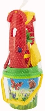 Eimer, Schaufel, Rechen und Förmchen ermöglichen den Bau von Burgen, Tunneln und Sandkuchen. Alles ist leicht, kompakt und einfach zu tragen.