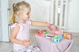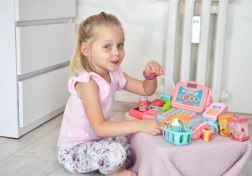 Das Rollenspiel „Laden“ fördert Kommunikation, Zusammenarbeit und Grundlagen der finanziellen Bildung. Kinder können Waren scannen, Obst und Gemüse „wiegen“, Preise eintippen und die Zahlung bar oder mit Karte wählen. Die hochwertige und sichere Kunststoffausführung sorgt für langen und sicheren Spielspaß.