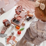 Diese stylische Kinderkasse von WOOPIE bringt authentisches Kaufladen-Spiel nach Hause: Kinder wiegen Obst und Gemüse, scannen Produkte und berechnen den Einkauf über eine übersichtliche Tastatur. Dank des Zahlungsterminals probieren sie Kartenzahlung und kontaktloses Bezahlen aus, die Geldschublade öffnet sich per OPEN-Taste und das Mikrofon funktioniert wie in echt.