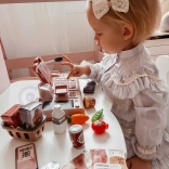 Scanne die Artikel aus dem Set mit dem typischen Geräusch, lege sie auf die Waage und notiere den Preis. Kinder erleben einen echten Einkauf von A bis Z.