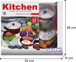 Mit dem WOOPIE-Set erhält Ihr Kind eine eigene kleine Küche: Töpfe mit Deckeln, Pfanne, Schüssel, Gewürze sowie eine breite Auswahl an Lebensmitteln – vom Ei und Würstchen über Fisch und Gemüse bis hin zu Steak. Dank realistischer Ausführung und lebhafter Farben werden Vorstellungskraft, Feinmotorik und soziale Fähigkeiten beim Rollenspiel gefördert.