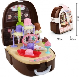 Der kleine Konditor ist immer startklar! Dieses niedliche Set in Form eines Rucksacks verwandelt sich nach dem Öffnen in eine komplette Eisdiele und einen Mini-Laden. Kinder können Kugel-Eis servieren, Waffeln befüllen und süße Leckereien an Freunde und Eltern verkaufen. Dank der leichten Konstruktion nehmen sie es mühelos mit auf den Spielplatz, zu den Großeltern oder in den Urlaub.