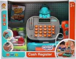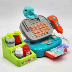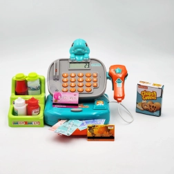 Eröffnen Sie Ihren eigenen kleinen Laden mit der WOOPIE DINO Kinderkasse in Blau. Kinder können die Waren mit dem Scanner und realistischen Geräuschen „scannen“, den Preis auf dem echten Taschenrechner eingeben und mit Münzen, Banknoten oder Karte bezahlen. Außerdem ist ein praktisches Regal für Waren enthalten, das dem Spiel Authentizität verleiht.