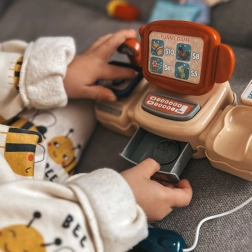 Kinder können Waren „piepen“ lassen und authentische Scan-Geräusche hören. Die Geldschublade und Tasten unterstützen realistisches Spiel und das Lernen über Bezahlung.
