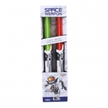Verleihen Sie Ihren Abenteuern eine filmreife Atmosphäre. Dank der praktischen Kupplung mit Griff lassen sich zwei Schwerter leicht zu einem verbinden, das gut in der Hand liegt und flüssige Drehungen um die Achse ermöglicht. Die Effekte sind hell und unterhaltsam, die Aktivierung erfolgt einfach über den Knopf am Griff.