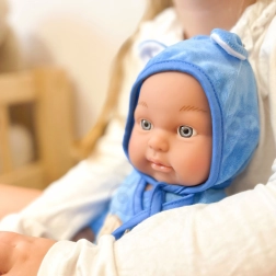 Diese realistische Puppe trägt einen weichen Body mit Kapuze und kleinen Ohren sowie passende Schühchen/Söckchen. Sorgfältig ausgearbeitete Details von Gesicht und Händen verleihen der Puppe ein authentisches Aussehen und machen sie zu einer tollen Begleiterin für tägliches Spiel und beruhigendes Kuscheln.