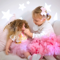 Feine Wimpern, ausdrucksstarke Augen und langes Haar zum Kämmen fördern die Kreativität. Ein plüschiger Bauch und Gliedmaßen aus weichem Silikon verleihen der Puppe eine natürliche Haptik.