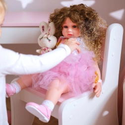 Die Puppe RAQUEL aus der ROYAL-Kollektion begeistert durch Realismus – feine Wimpern, schöne Augen und langes, glänzendes Haar laden direkt zum Frisieren ein. Der Körper ist angenehm weich und plüschig, Kopf und Gliedmaßen bestehen aus weichem Silikon für ein natürliches Gefühl. Sitzt selbstständig und dank abnehmbarer Kleidung, die maschinenwaschbar ist, ist die Pflege der Puppe einfach.