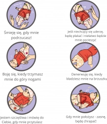 Lachen beim Wiegen, Freudenlaute beim Umarmen, Weinen bei kräftiger Berührung, Schnarchen und Schlafgeräusche in Rückenlage, Unzufriedenheit in Bauchlage