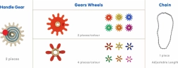 Ein großartiges Set bunter Zahnräder und Ketten, mit dem sich komplexe Mechanismen montieren lassen. Dieses Spielzeug wird mit spezielle Schrauben auf dem Masterkidz STEM-Board befestigt. Durch das Spielen mit Zahnrädern verbessern Kinder ihre motorischen Fähigkeiten, logisches Denken und Kreativität.