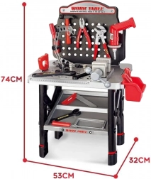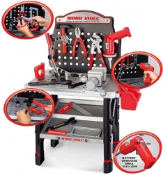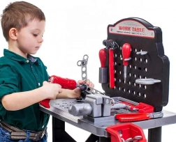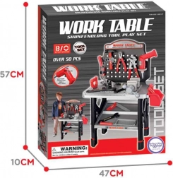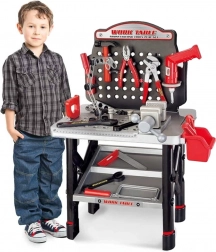 Der Werkstatttisch ist so gestaltet, dass er Kindern beibringt, wie man Werkzeuge richtig benutzt und ihre Funktion versteht. Ein hervorragendes Spielzeug für selbstständiges als auch gemeinsames Spielen mit Eltern oder Freunden.