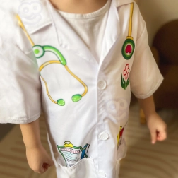 Das Kostüm imitiert perfekt einen echten Arztkittel mit allen Details.