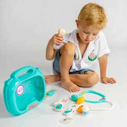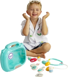 Das alles ist in einem praktischen Köfferchen mit Griff verstaut, was ein einfaches Tragen garantiert. Das Kind kann seine Fantasie entfalten und Arzt oder Patient spielen!