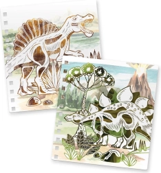 Das DinosArt Set mit Folien-Malbildern verbindet kreatives Gestalten mit spannenden Fakten aus der Welt der Dinosaurier. Dank des folienhaften Klebestifts lassen sich die leuchtenden Folien leicht auf die markierten Stellen übertragen – so entstehen eindrucksvolle, glänzende Bilder ganz ohne Chaos. Kinder trainieren dabei Feinmotorik, Geduld und Kreativität.