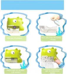 Verwandeln Sie jedes Bad in ein spaßiges Schaumabenteuer. Der Dinosaurier-Badeschaumgenerator WOOPIE haftet dank vier Saugnäpfen zuverlässig auf glatten Oberflächen, besteht aus hochwertigem ABS und widersteht Spritzwasser (IP6). Der starke Motor erzeugt eine enorme Menge Bläschen, sodass Kinder das Baden lieben werden.