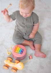 Mit der WOOPIE Schnecke entdecken Kinder die Welt der Musik, der Bewegung sowie von Ursache und Wirkung. Sie können mit den herausnehmbaren Augen–Schlägeln auf die bunten Xylophontasten klopfen, die Schnecke am stabilen Band ziehen oder anschieben und zusehen, wie sie losfährt. Leuchtende Farben und ein verspieltes Design fördern die visuelle Wahrnehmung und bieten viele Minuten kreativen Spielspaßes.